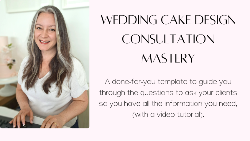 A done-for-you template & video tutorial to guide you with all the questions you need to ask during your wedding cake design consultations